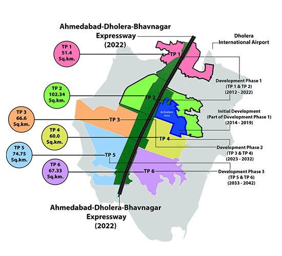 – Dholera SIR is divided into Town Planning Schemes (TP1–TP6), with dedicated residential zones offering branded residencies, gated communities, and eco-friendly layouts.